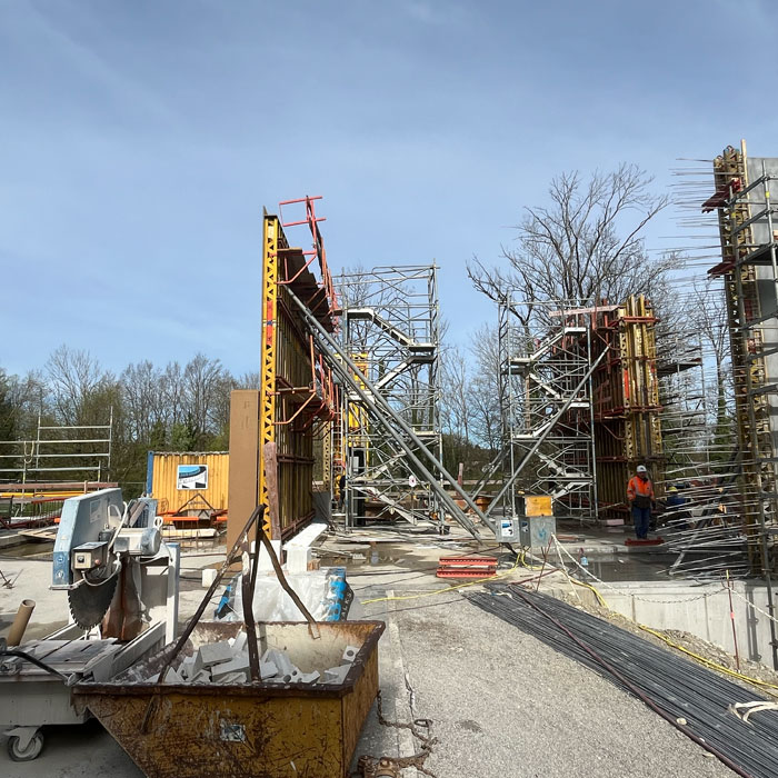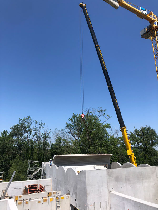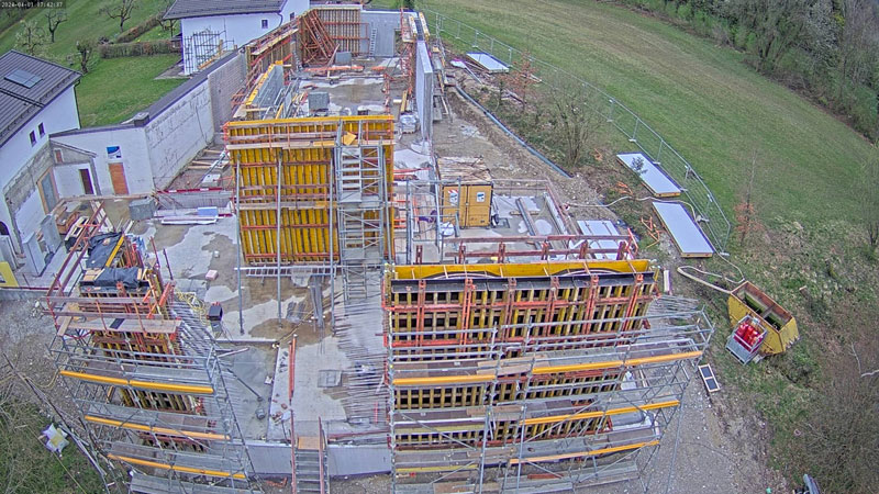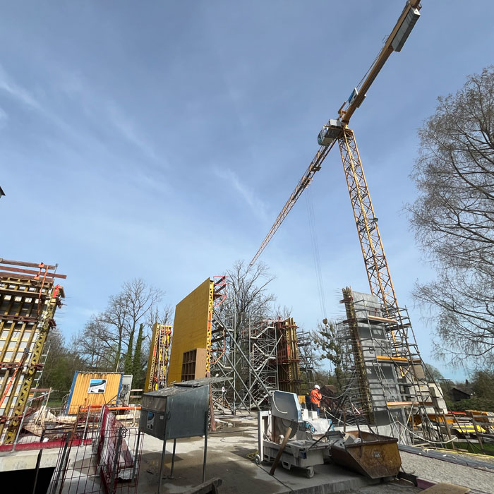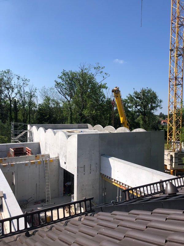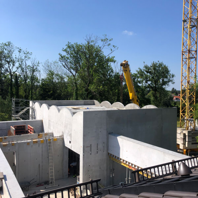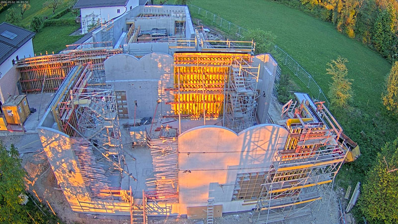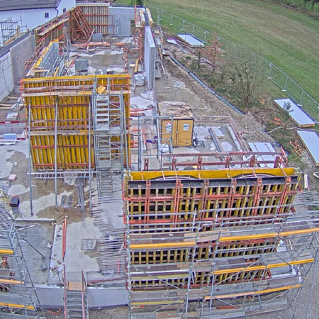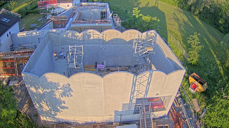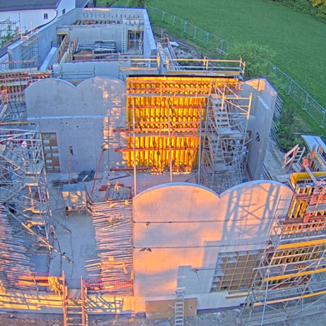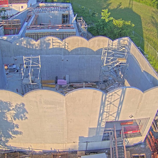 Blick auf die Baustelle – So wird das neue Museum aussehen Für das COMU Carl Orff Museum wird der Bestand aus Wohn- und Arbeitshaus des Komponisten durch einen Neubau ergänzt. Entworfen wurde dieser vom Münchner Architekturbüro Meck Architekten. Ausführendes Bauunternehmen ist die Firma Lutzenberger, die einen sehr erfahrenen Bautrupp nach Dießen geschickt hat. Die anspruchsvolle Architektur wird mit innovativem Ultraleichtbeton ausgeführt, der eine optimale Isolierung ermöglicht. Für Nachhaltigkeit werden auch Solarpaneele auf dem Museumsdach und eine Wärmepumpe sorgen.Seit Sommer 2023 entsteht der Rohbau. Inzwischen stehen alle Wände des neuen Gebäudes und der besonders eindrucksvolle Sonderausstellungsraum hat sein Tonnendach bekommen. Man bekommt schon einen ersten Eindruck wie das Gebäude aussehen wird. Am 129. Geburtstag von Carl Orff (10.07.1895) werden wir das Richtfest feiern. Die Fertigstellung des Gebäudes können wir kaum erwarten. Your browser does not support the video tag. Rohbau Vogelperspektive - COMU Baustellenbild COMU Artikel in News • 1. Mai 2024 Teilen Twitter Facebook LinkedIn